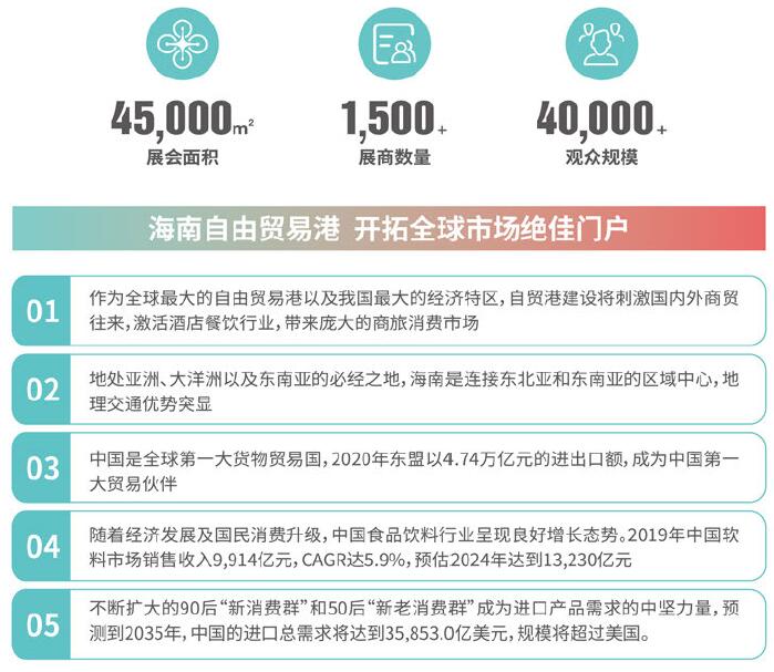 海南國(guó)際飲品博覽會(huì),立基海南、面向全球,致力于為飲料及餐飲連鎖加盟企業(yè)進(jìn)駐海南自貿(mào)港,開(kāi)拓在中國(guó)以及東盟市場(chǎng)的商貿(mào)業(yè)務(wù)。展會(huì)通過(guò)新品展示,資訊分享,趨勢(shì)洞察、資源對(duì)接的一站式服務(wù)為供求雙方搭建專(zhuān)業(yè)的商貿(mào)平臺(tái),助力企業(yè)快速進(jìn)駐自貿(mào)港,搶占食飲新商機(jī)。