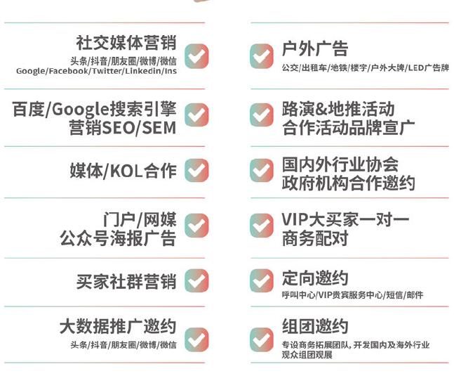 ▲全方位宣傳推廣,定向精準(zhǔn)邀約,商務(wù)配對(duì)服務(wù),最大化參展效益。